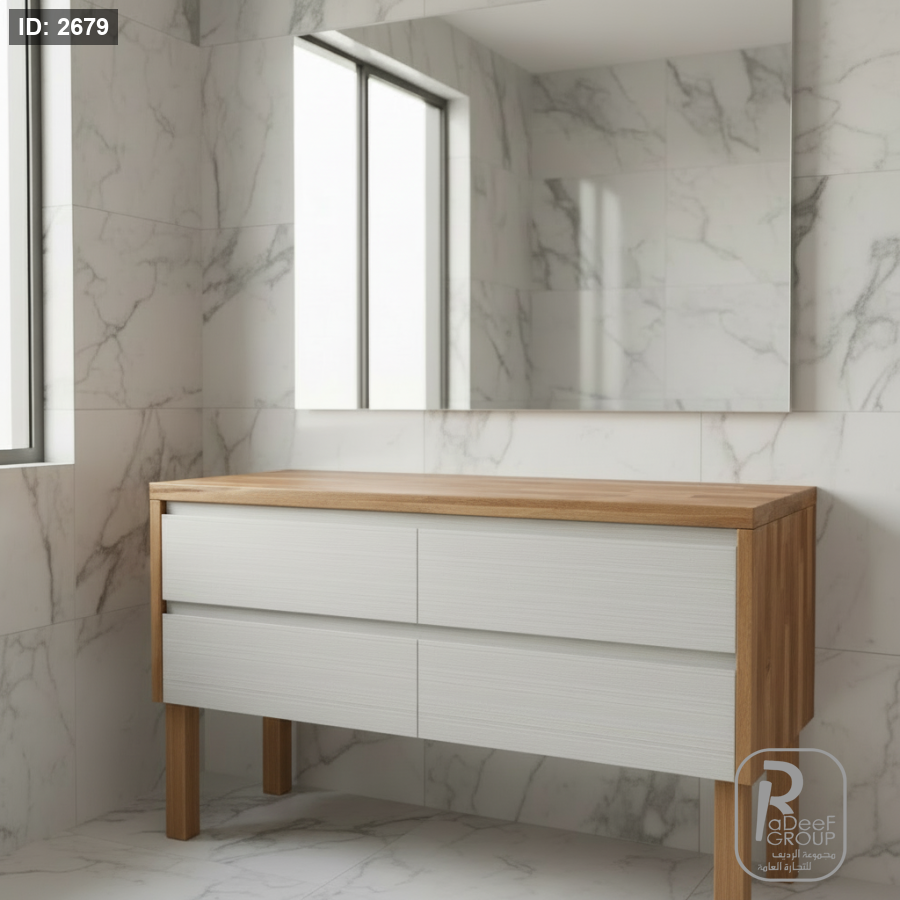 خزانة 120سم جارورين يد حفر ابيض + بلاطة جوانب خشب