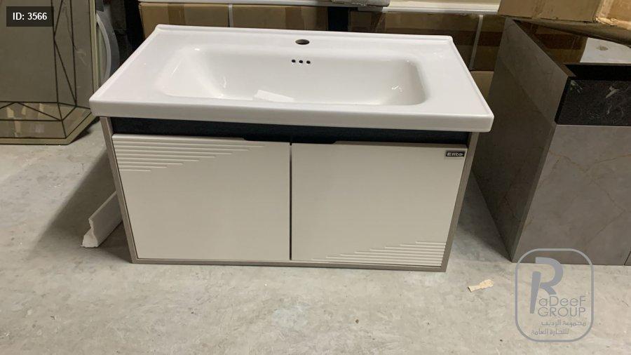 خزانة 60 سم ايليت مع حوض لون ابيض محززة رمادي