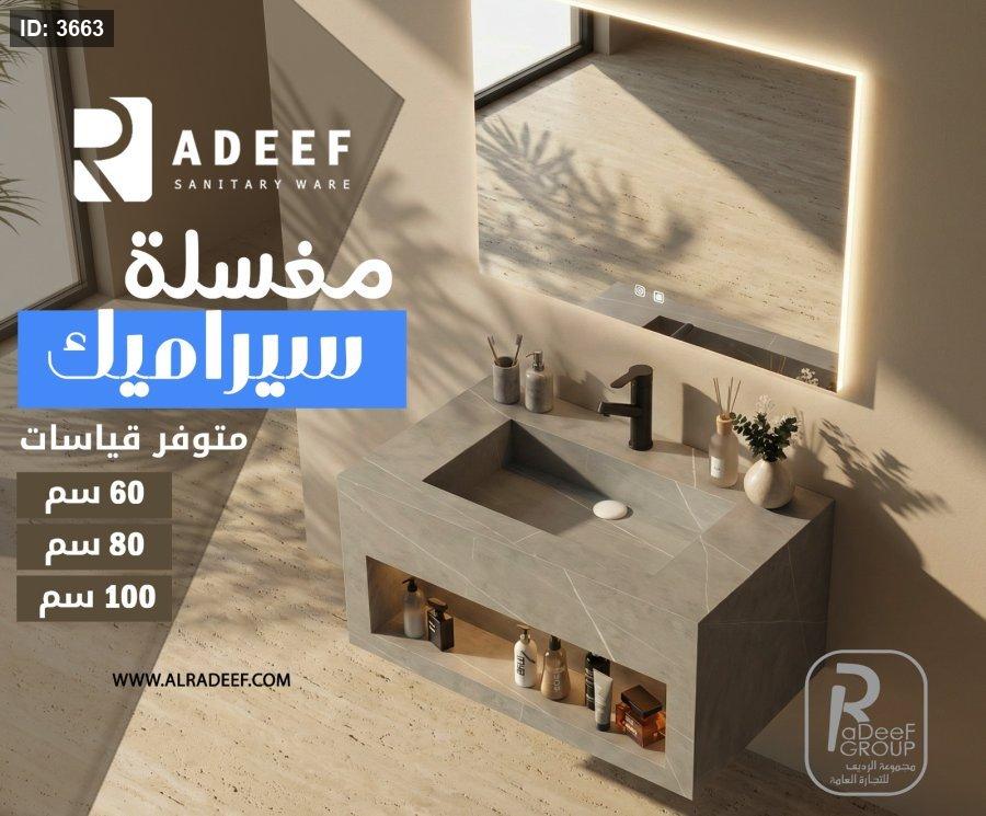 مغسلة بورسلان 100 سحرية موشح ابيض REVILAS مع مراي مضييء 3 الوان وتدفئة