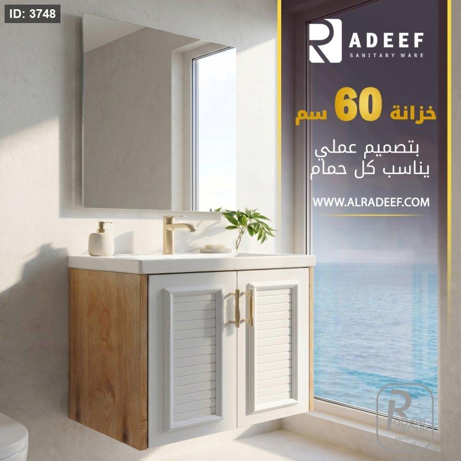 خزانة 60 سم دفتين جوانب خشب ابيض مع مراي وحوض